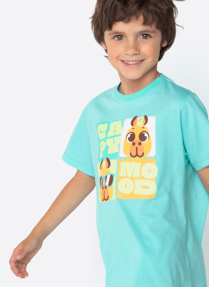 Pijama manga curta com estampa divertida e exclusiva Capivara para Puket