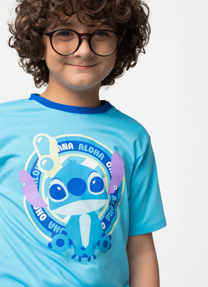 Pijama Manga Curta Algodão Menino Teen Stitch