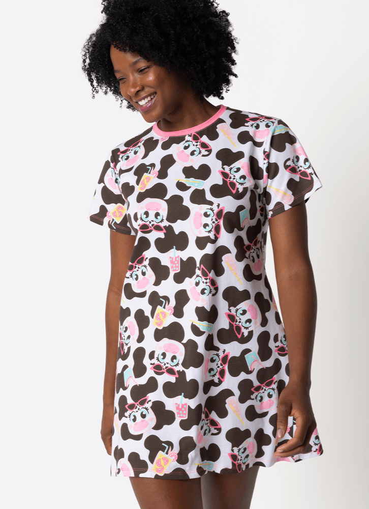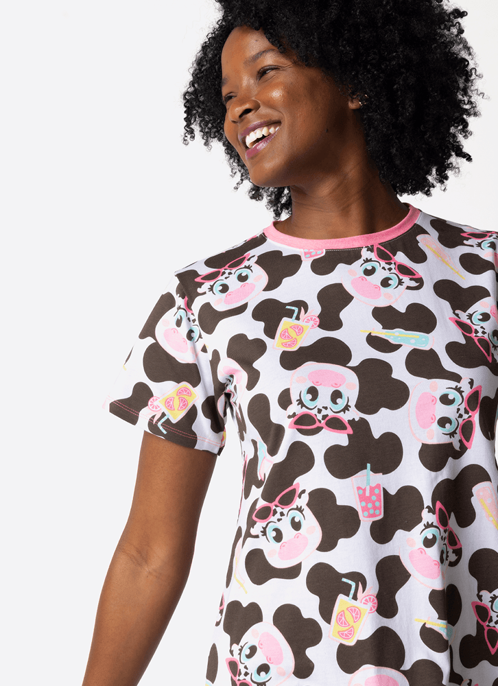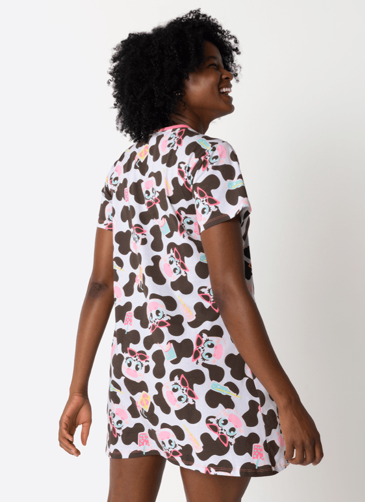 Camisola Manga Curta Algodão Feminina Vaca Summer