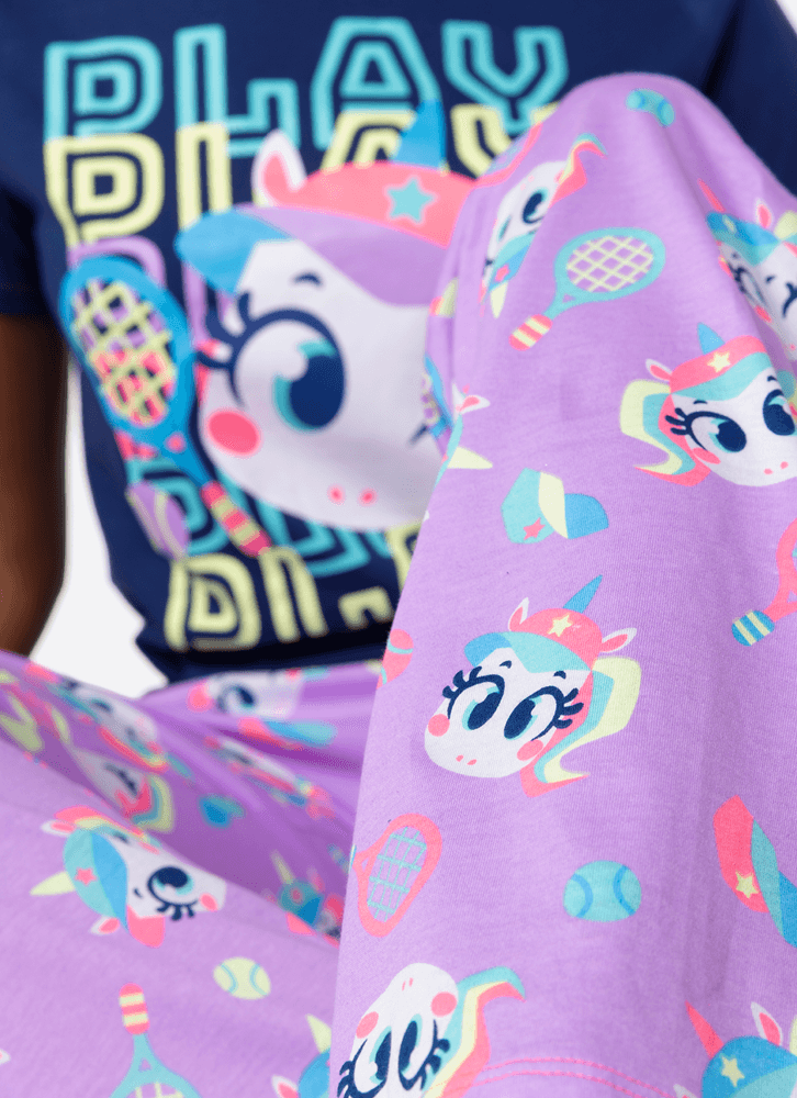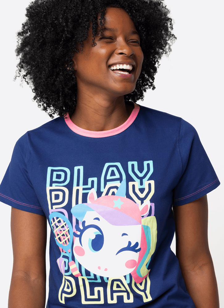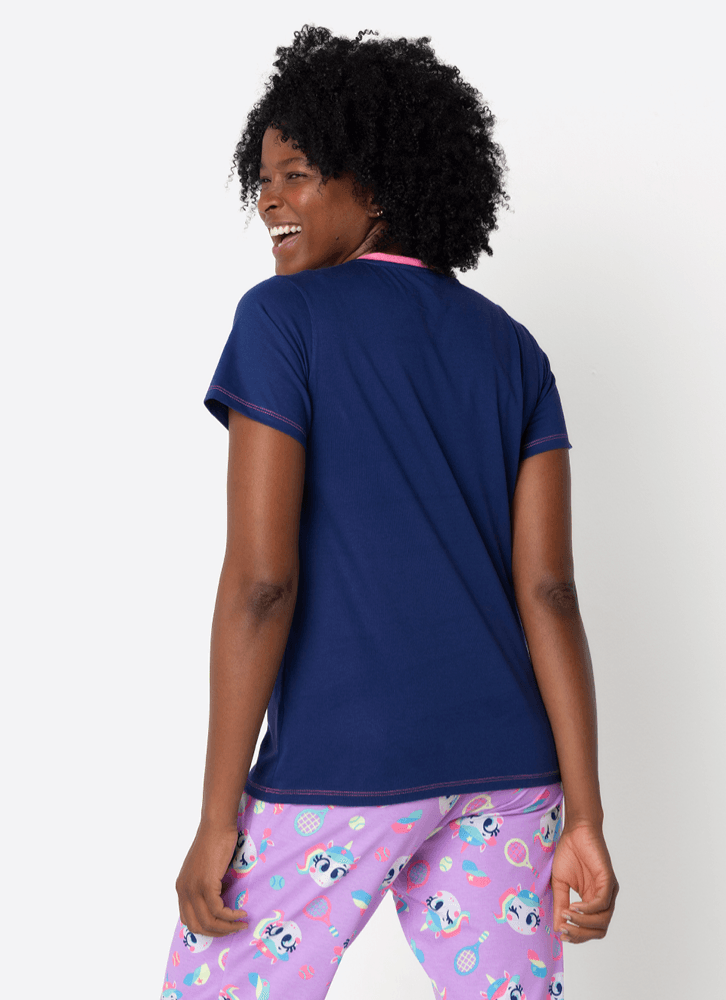 Pijama Manga Curta Algodão Feminino Unicórnio Tênis