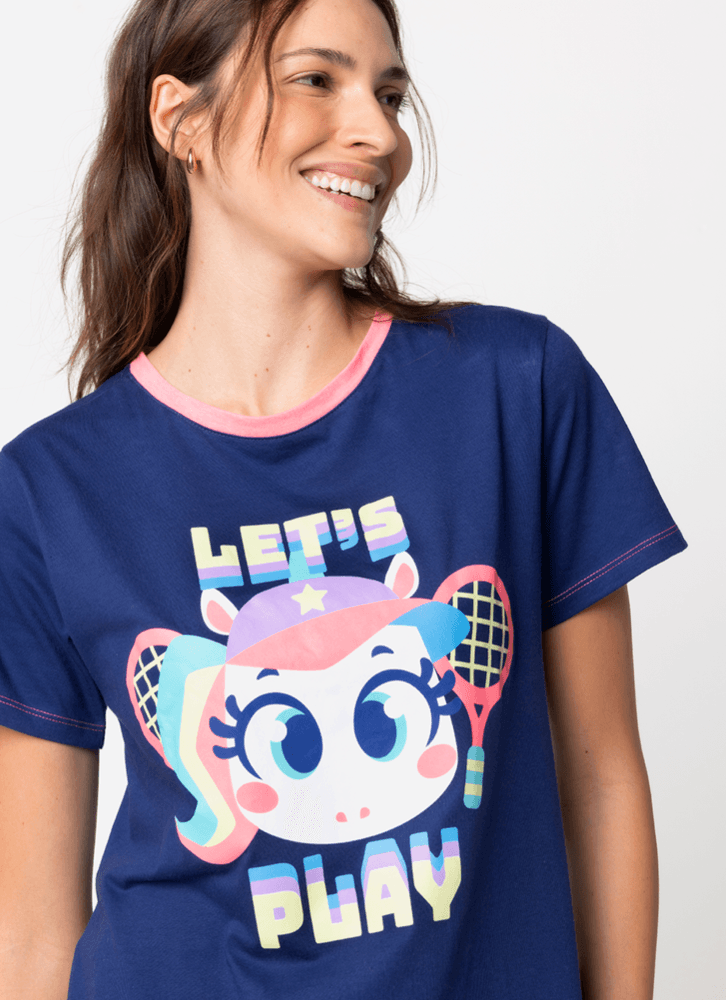 Camisola Manga Curta Algodão Feminina Unicórnio Tênis