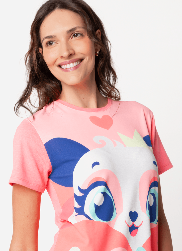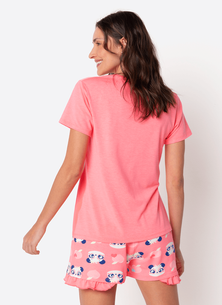 Pijama Manga Curta Viscolycra Feminino Panda Romântico