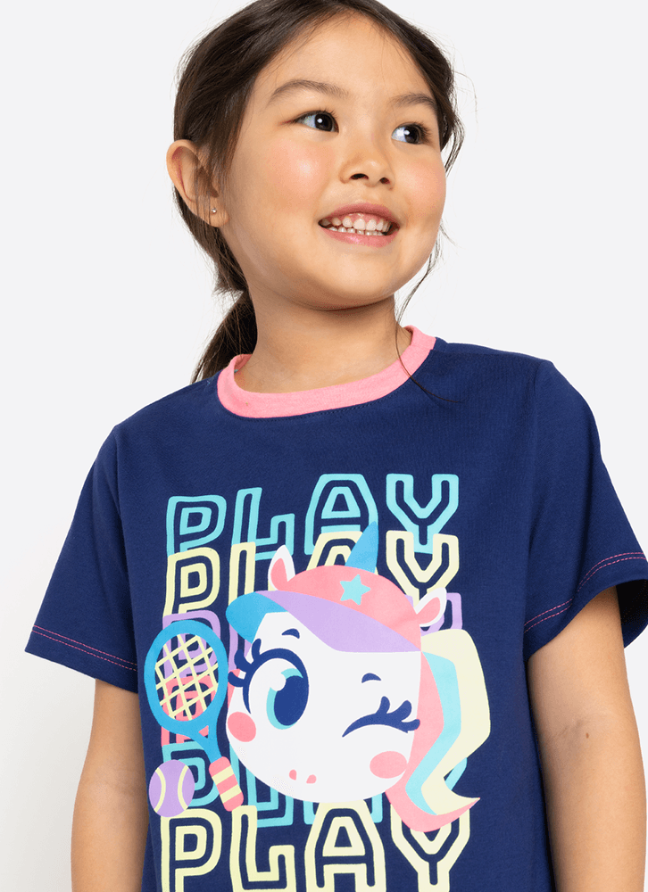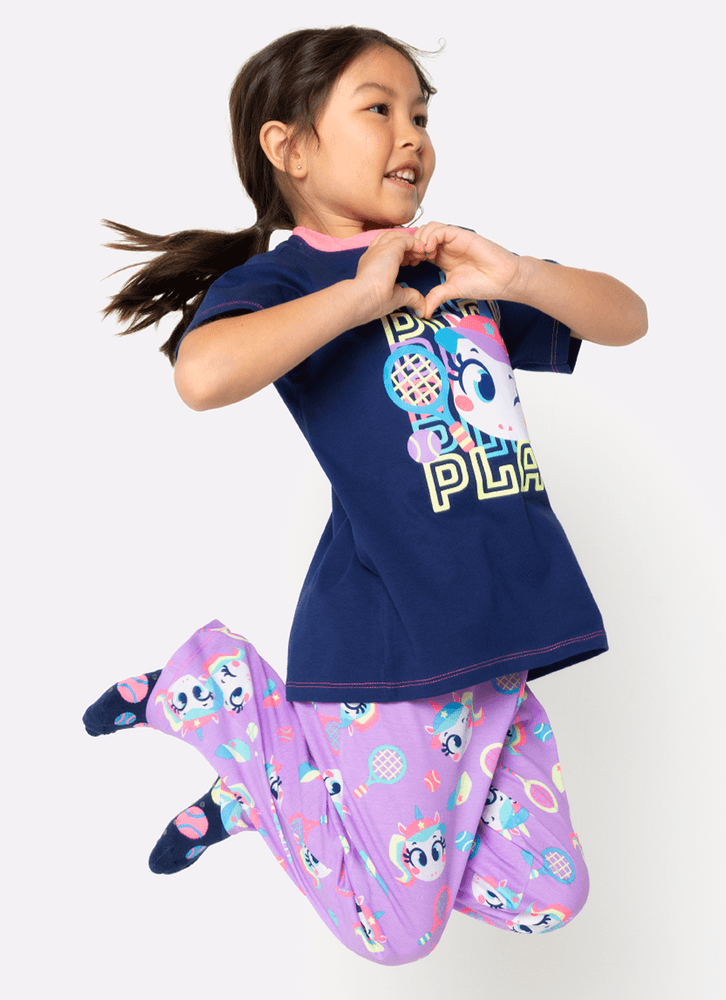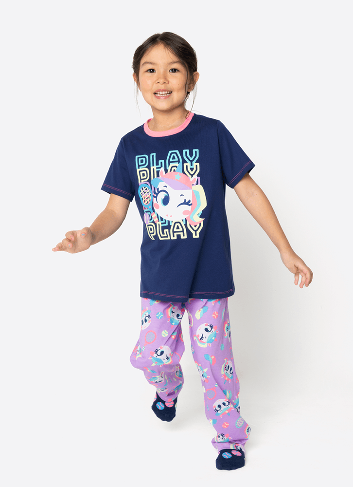 Pijama Manga Curta Algodão Menina Unicórnio Tênis