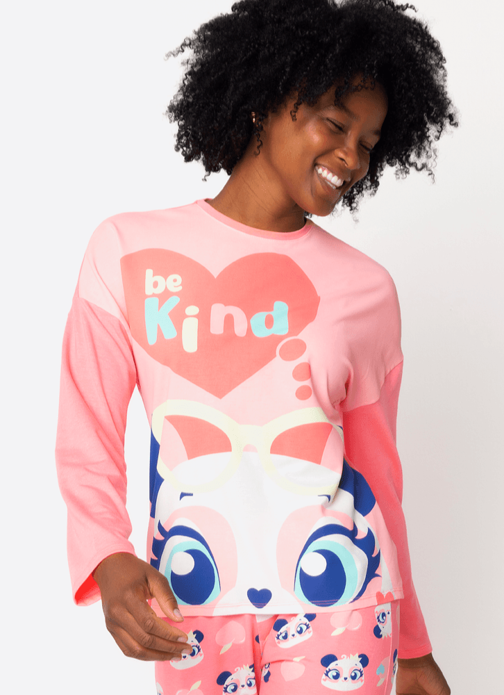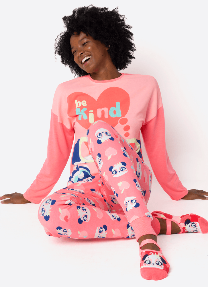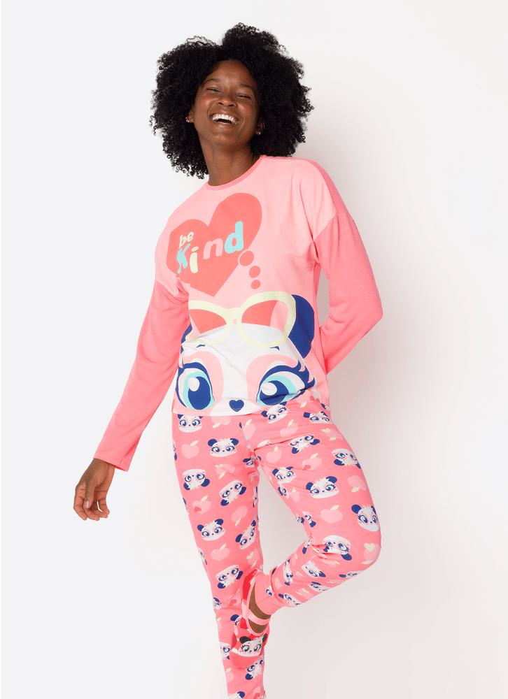 Pijama Manga Longa Viscolycra Feminino Panda Romântico
