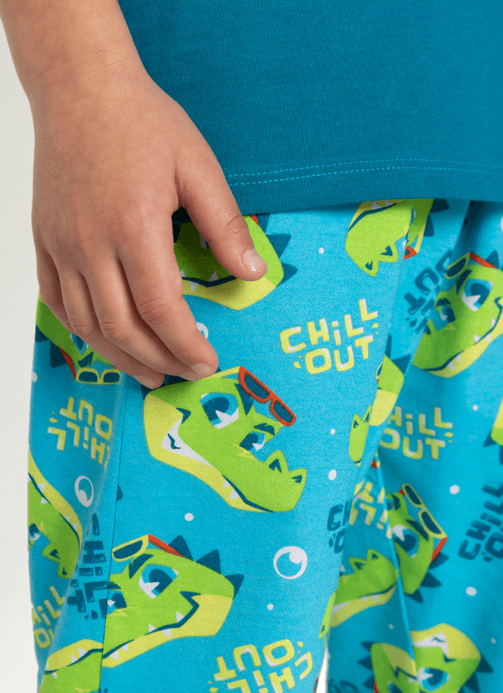 Pijama em meia malha de algodão com estampa exclusiva de Jacaré Puket