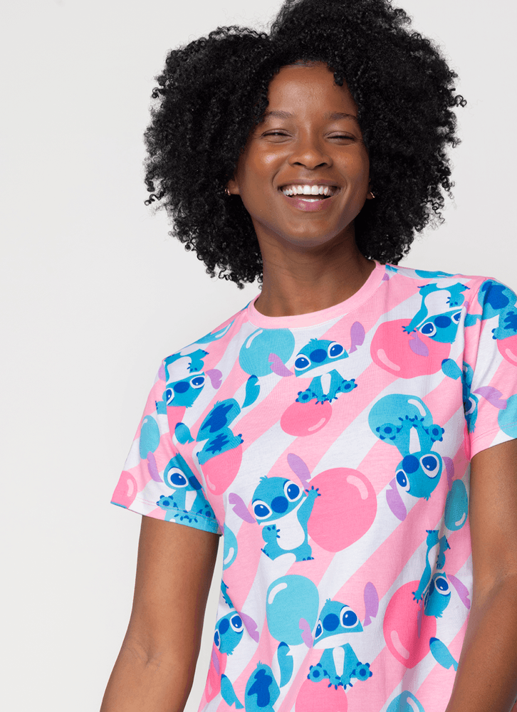 Camisola em algodão com estampa exclusiva Stitch Puket.