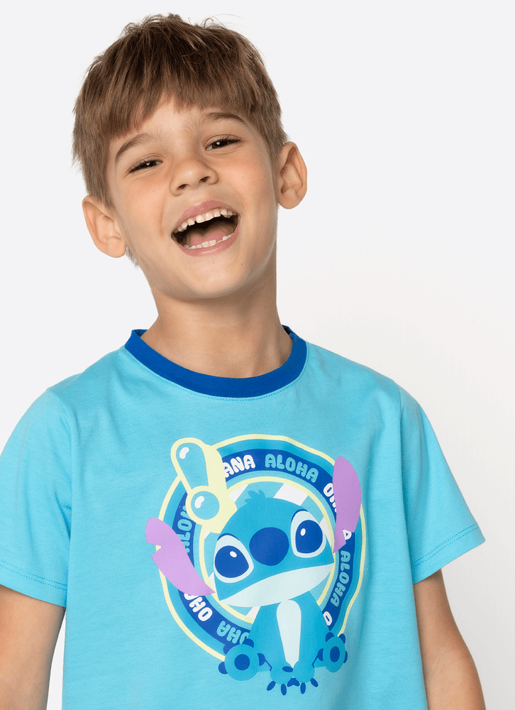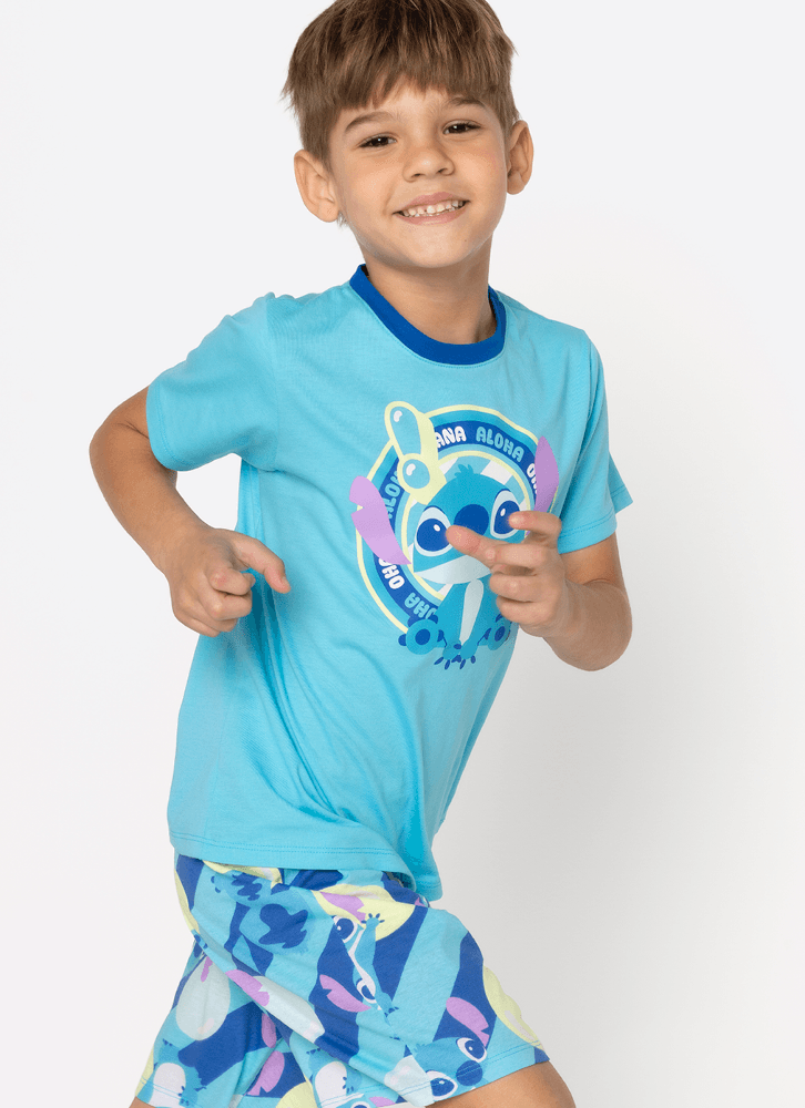 Pijama Manga Curta Algodão Menino Stitch