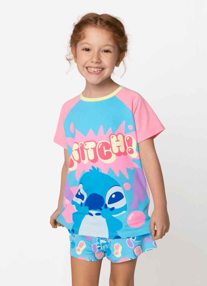 Pijama Manga Curta com estampa divertida e exclusiva Stitch Puket.