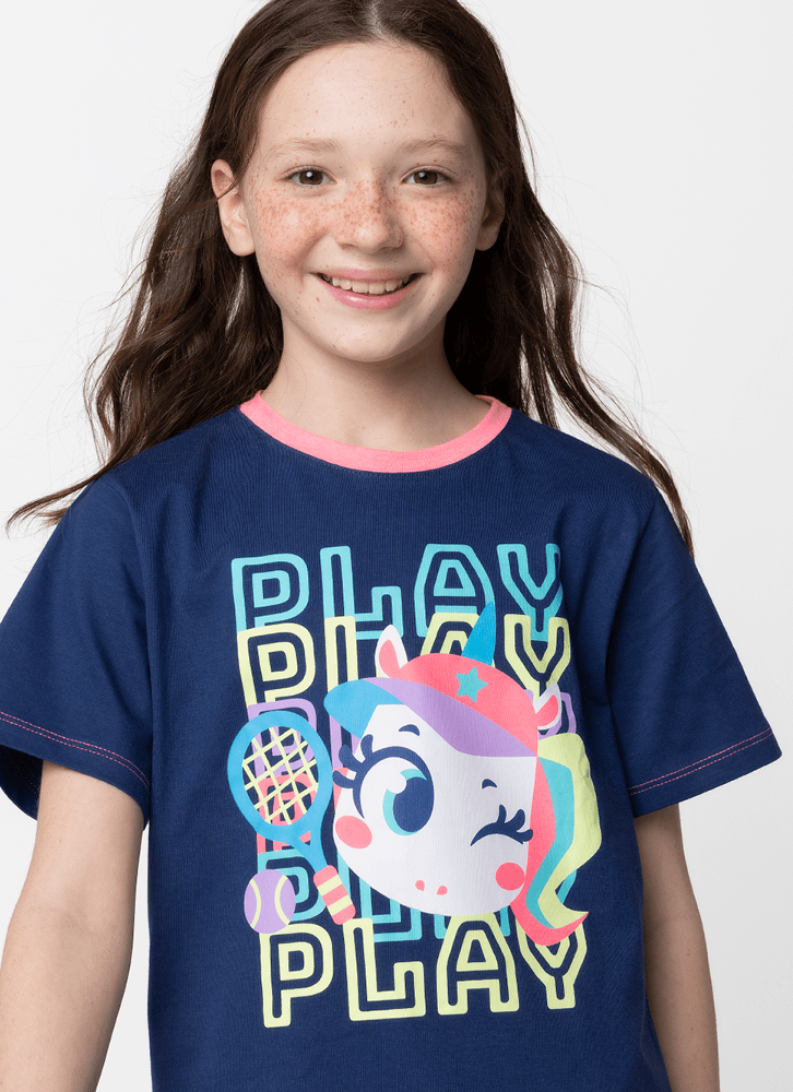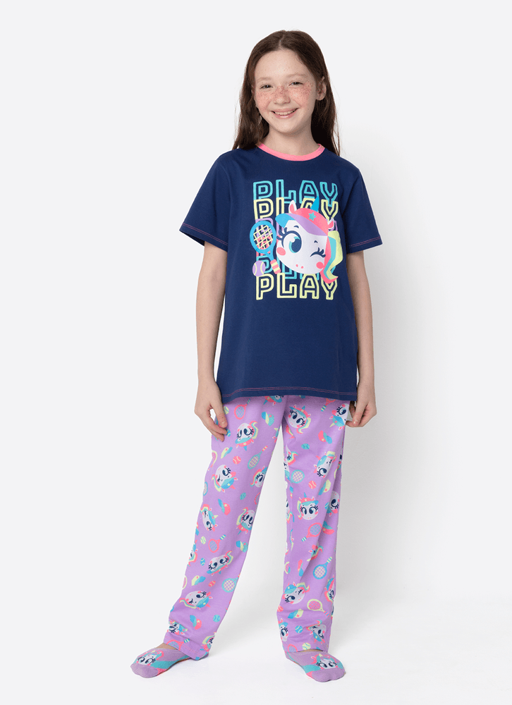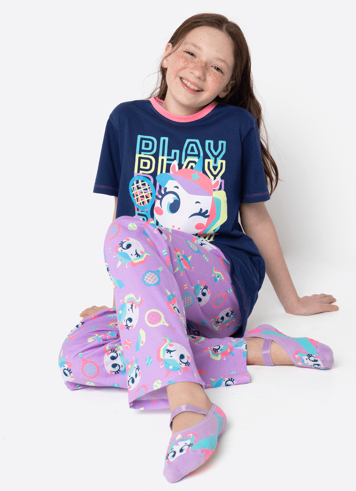 Pijama Manga Curta Algodão Menina Teen Unicórnio Tênis