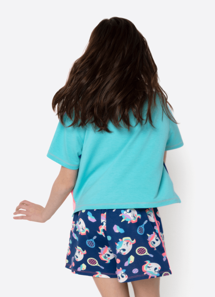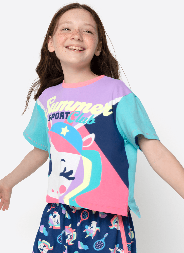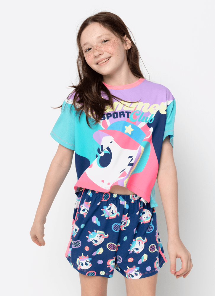 Pijama Manga Curta com estampa divertida e exclusiva Unicórnio Tennis para Puket