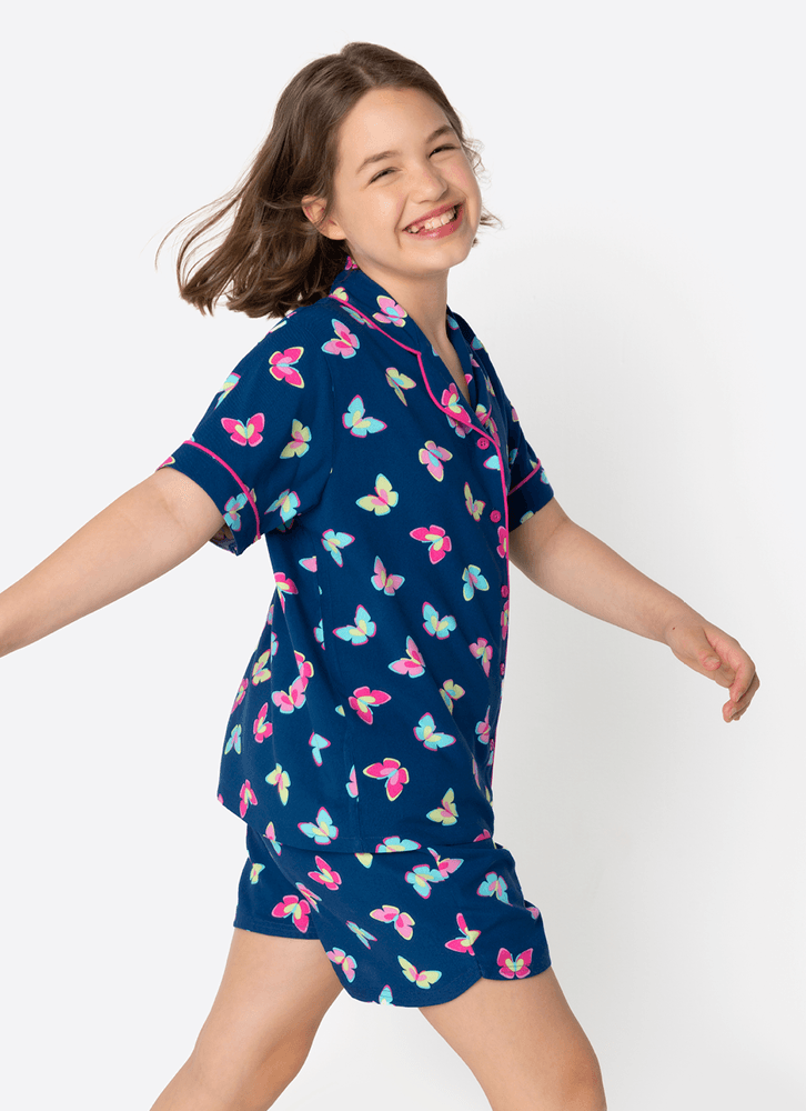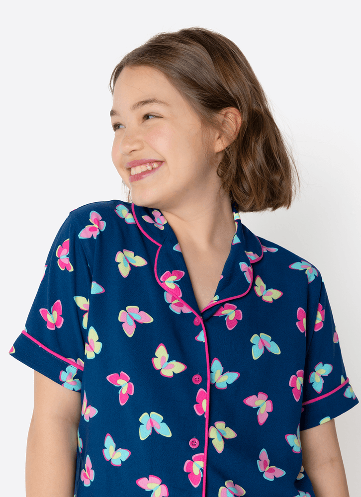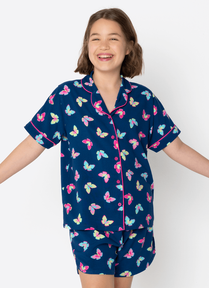 Pijama Manga Curta Viscose Menina Teen Borboletas