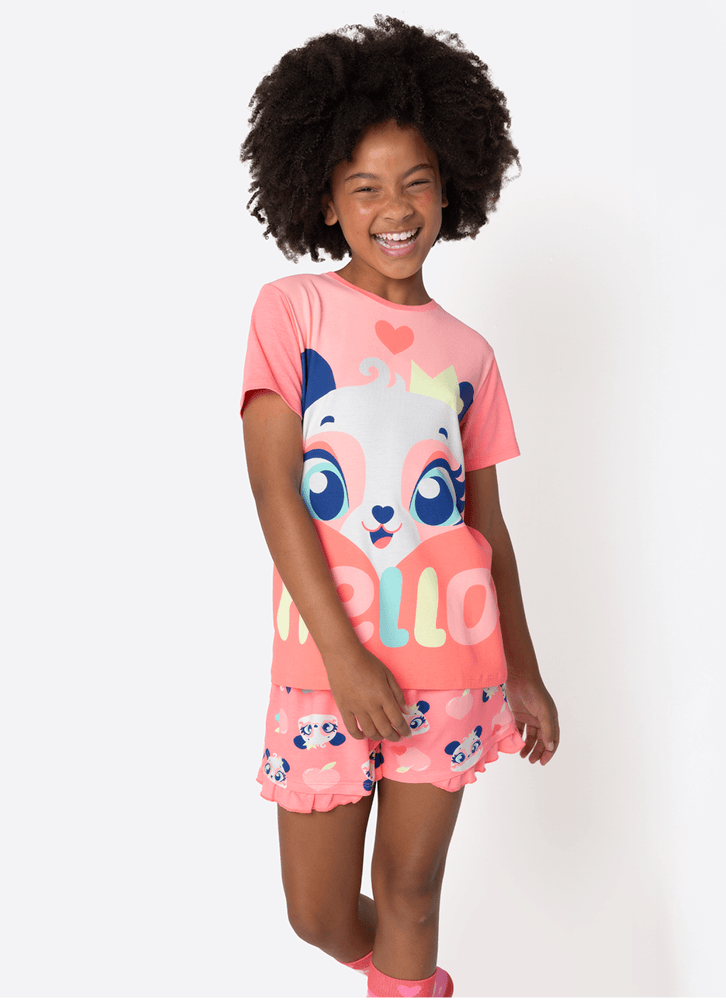Pijama Manga Curta Viscolycra Menina Teen Panda Romântico