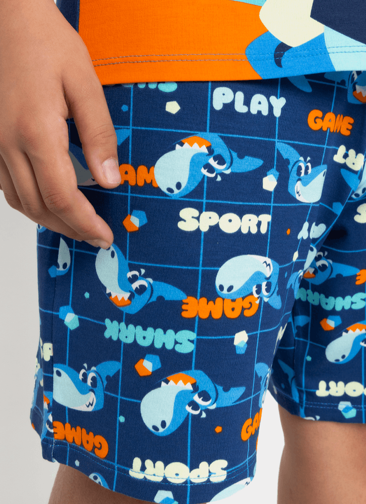Pijama Manga Curta com estampa divertida e exclusiva Tubarão Puket.