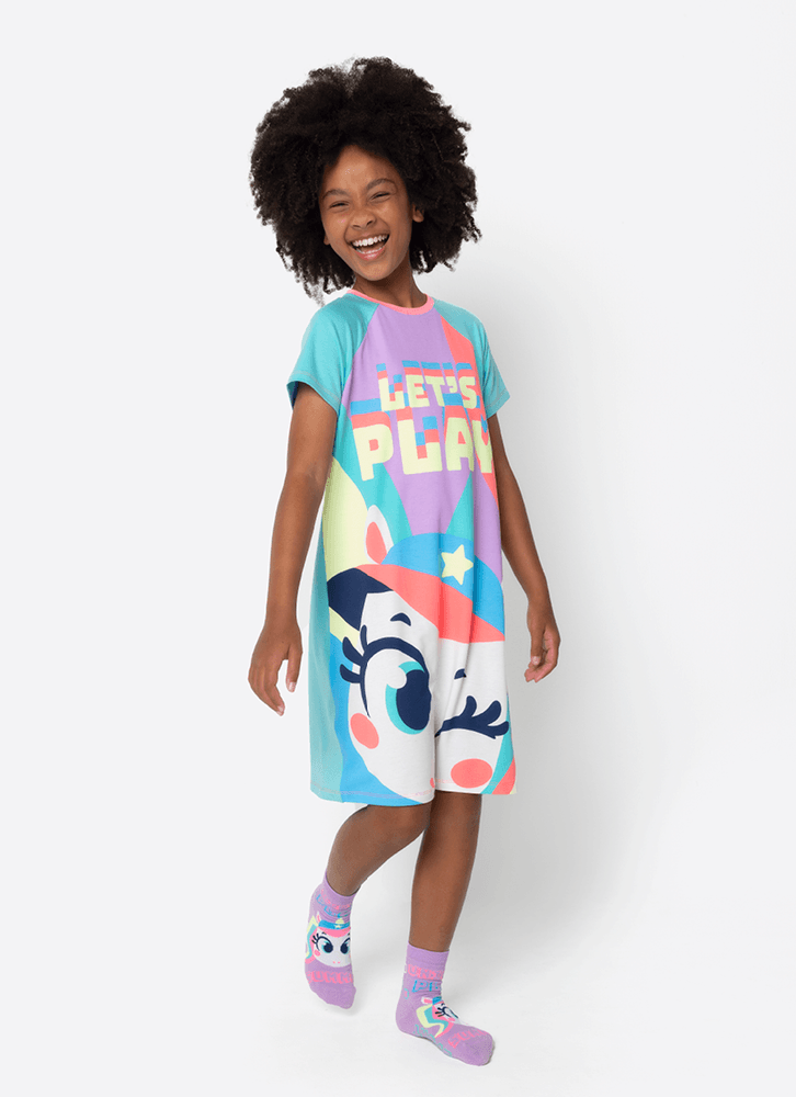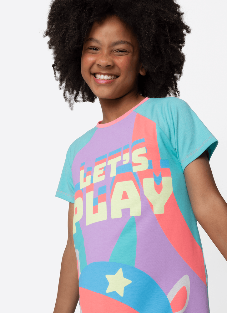 Camisola Manga Curta Viscolycra Menina Teen Unicórnio Tênis