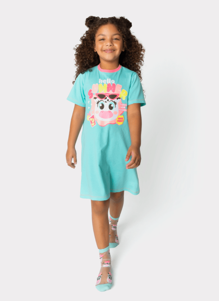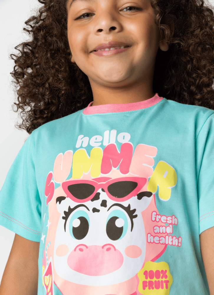 Camisola Manga Curta Algodão Menina Vaca Summer