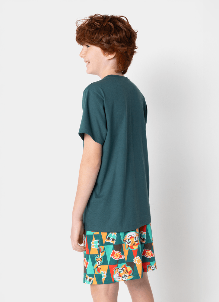 Pijama Manga Curta Algodão Menino Teen Tigre Camping