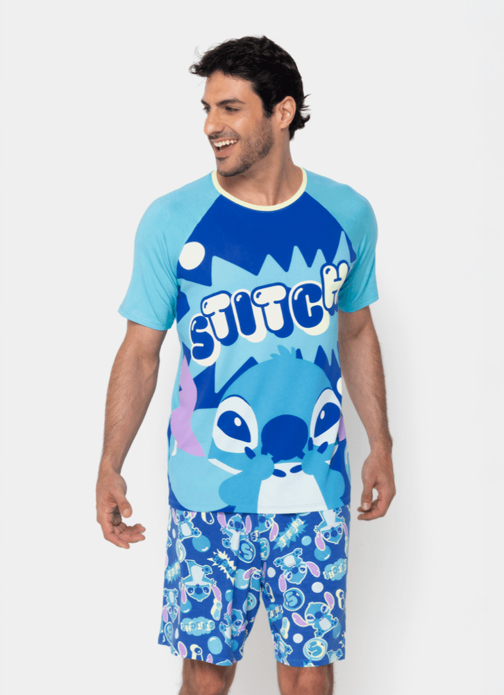 Pijama Manga Curta Viscolycra Masculino Stitch