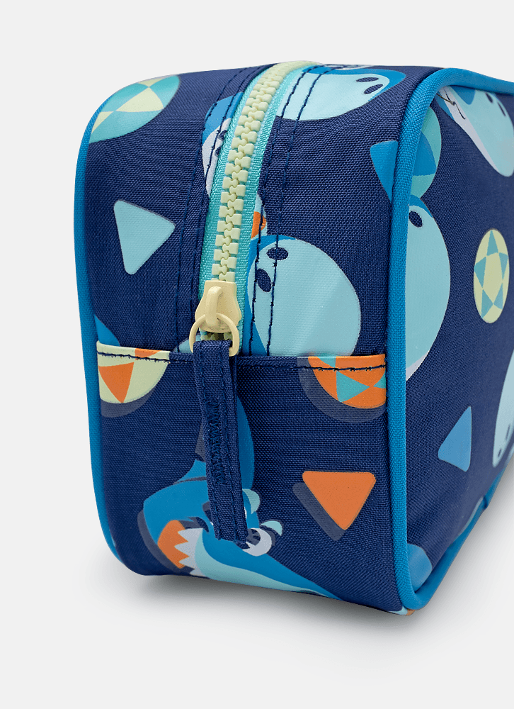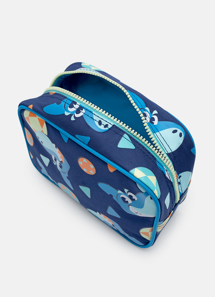 A necessaire média é perfeita para te acompanhar no dia a dia, pois tem o tamanho ideal para guardar seus principais itens. Com estampa corrida de Tubarão.