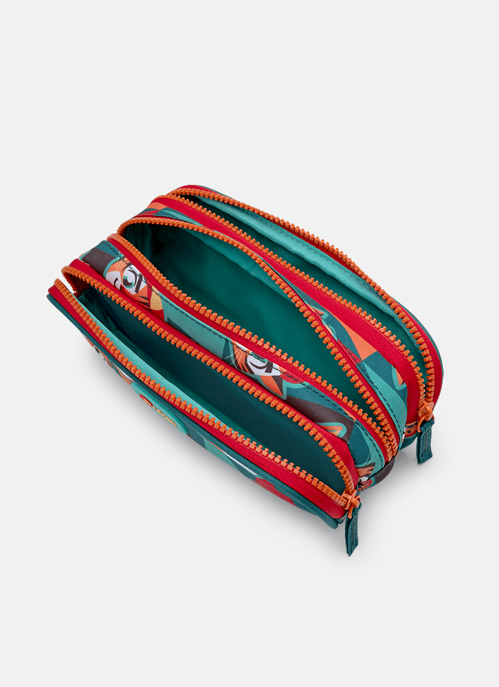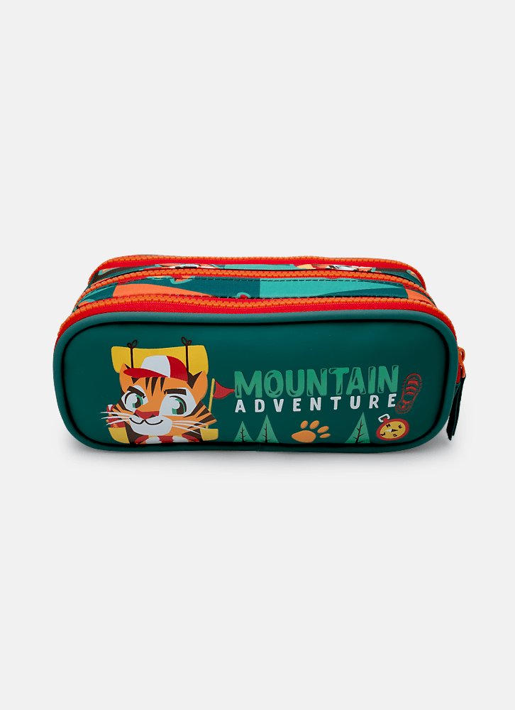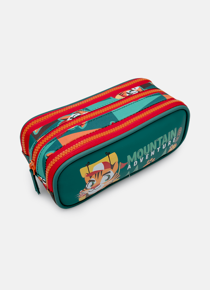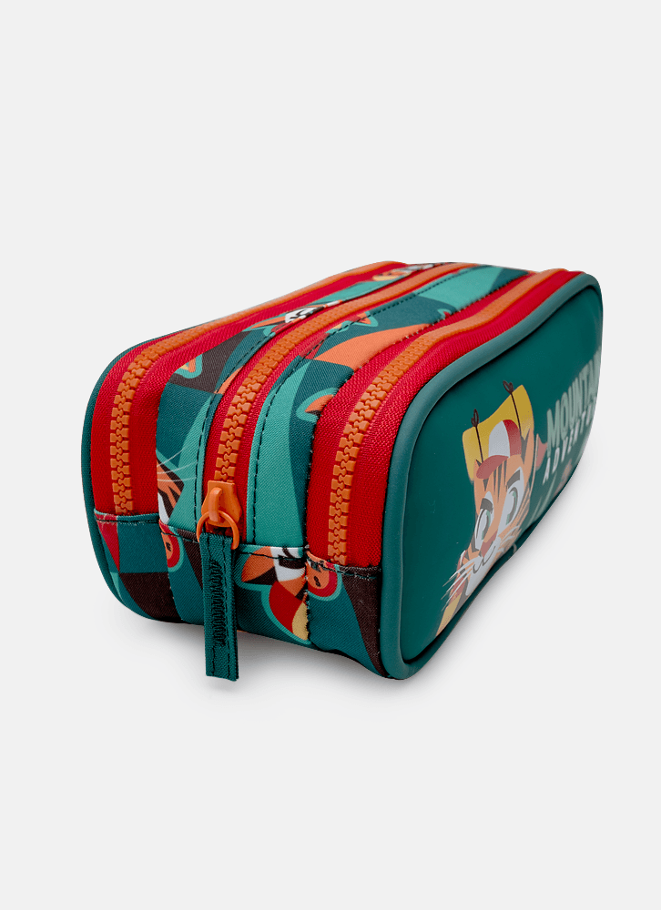 Estojo tripo, parte frontal em PU fosco com estampa de Tigre.