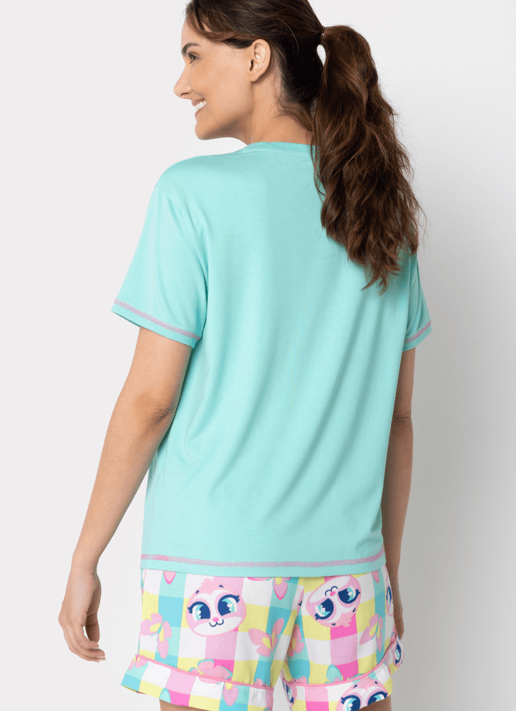 Pijama Manga Curta Viscolycra Feminino Preguiça Picnic