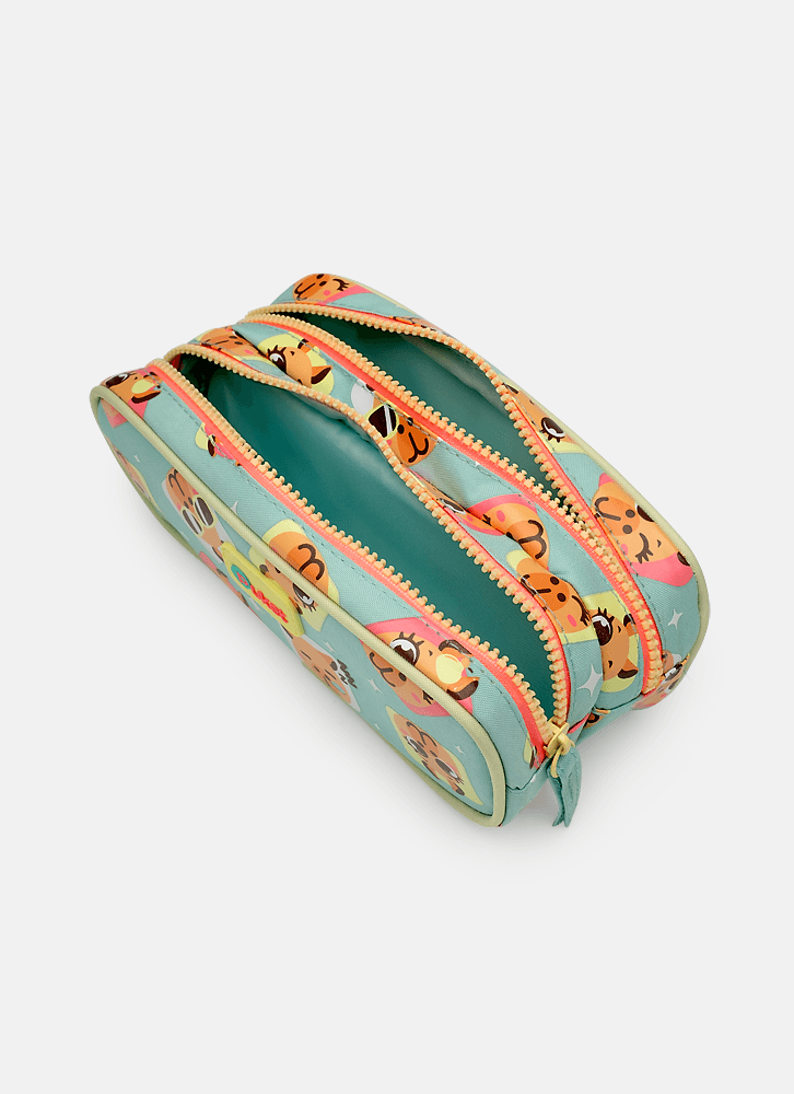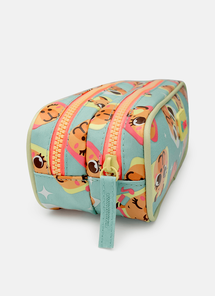 O estojo duplo com estampa de capivara possui 2 compartimentos, o que é ótimo para o armazenamento dos seus itens.
