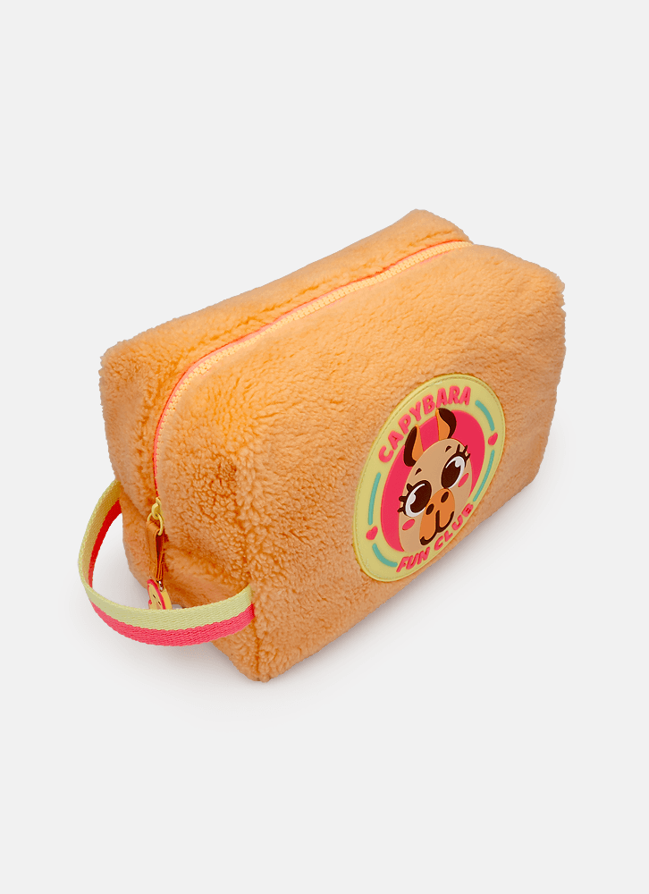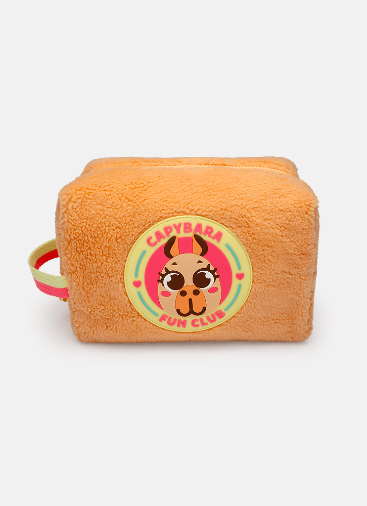 A necessaire grande é perfeita para te acompanhar no dia a dia, pois tem o tamanho ideal para guardar seus principais itens. Toda em pelúcia com selo de capivara.