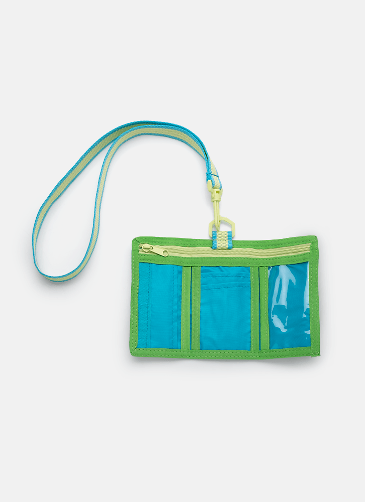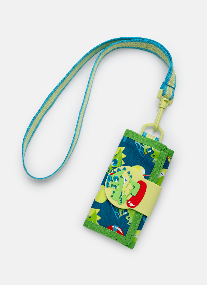 Carteira em nylon com estampa de Jacaré e alça de pescoço. Possui aplique emborrachado para fechamento e bolso interno com fechamento em zíper.