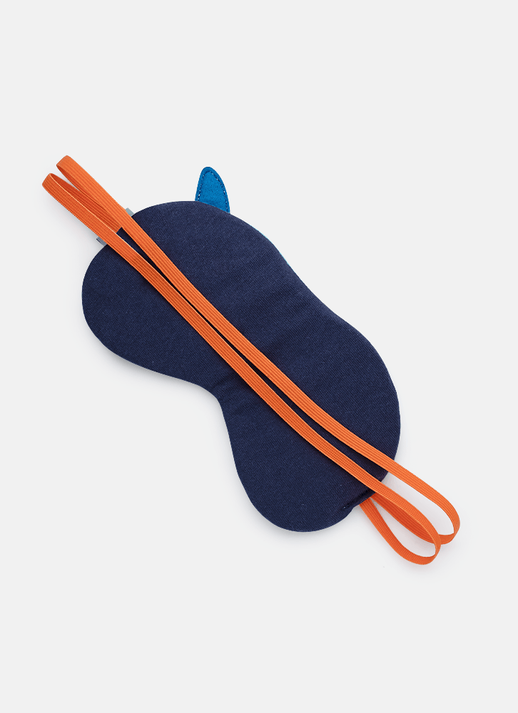 Tapa olhos de Tubarão com aplique em feltro bordado, forro em algodão e elástico duplo para melhor ajuste à cabeça.