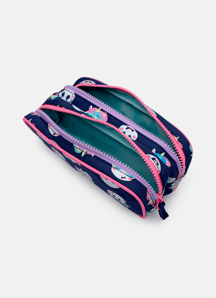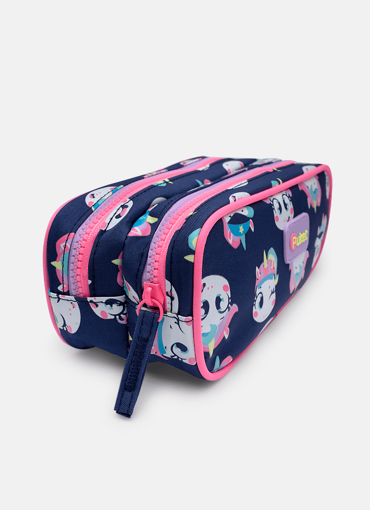 O estojo duplo possui 2 compartimentos, o que é ótimo para o armazenamento dos seus itens. Com estampa corrida de unicórnio.