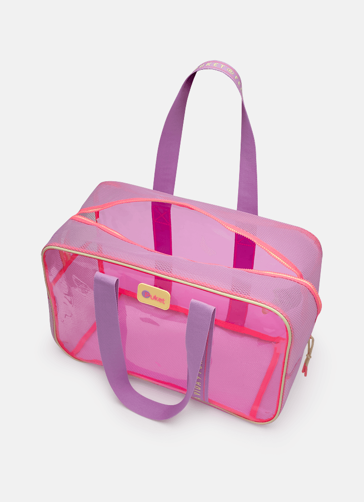 Bolsa color block em telinha. Abertura na parte superior por zíper. Alça de mão dupla e alça de ombro regulável. Acompanha necessaire flat na parte interna.