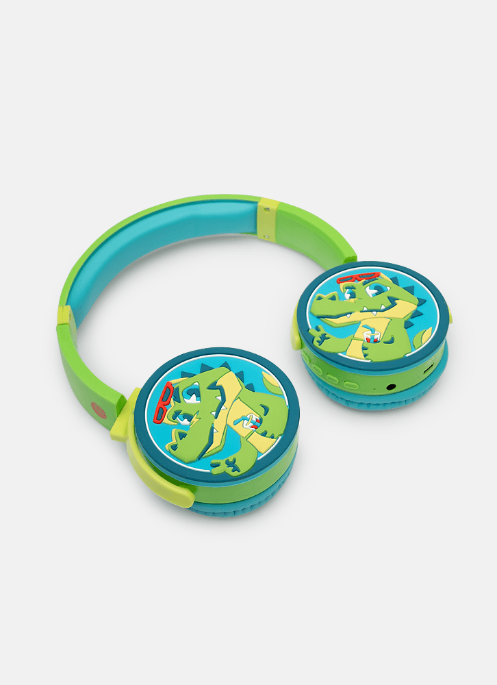 Fone de ouvido sem fio com conexão bluetooth. Detalhe de aplique emborrachado de Jaca.
