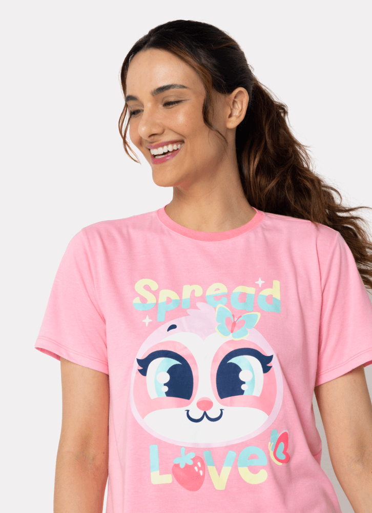 Pijama Manga Curta Algodão Feminino Preguiça Picnic
