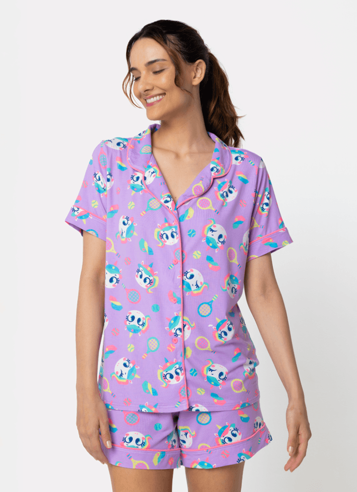 Pijama Manga Curta Viscose Feminino Unicórnio Tênis