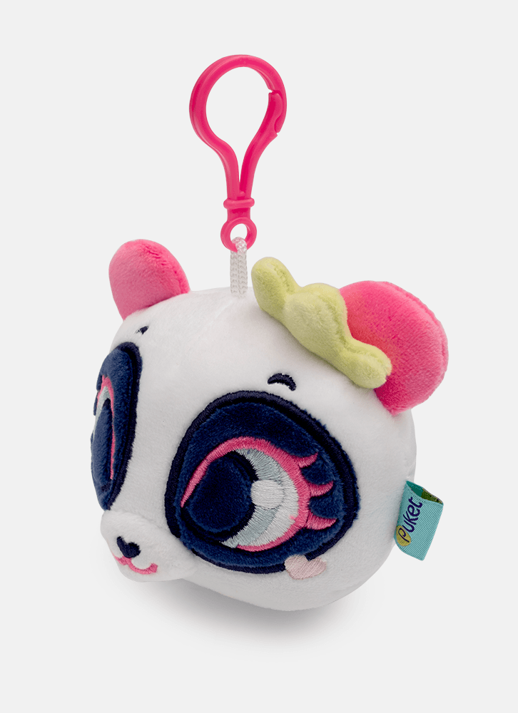 Chaveiro em pelúcia de Panda. Detalhes bordados e gancho colorido para pendurar.
