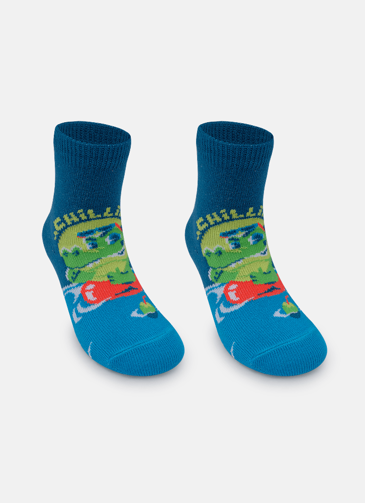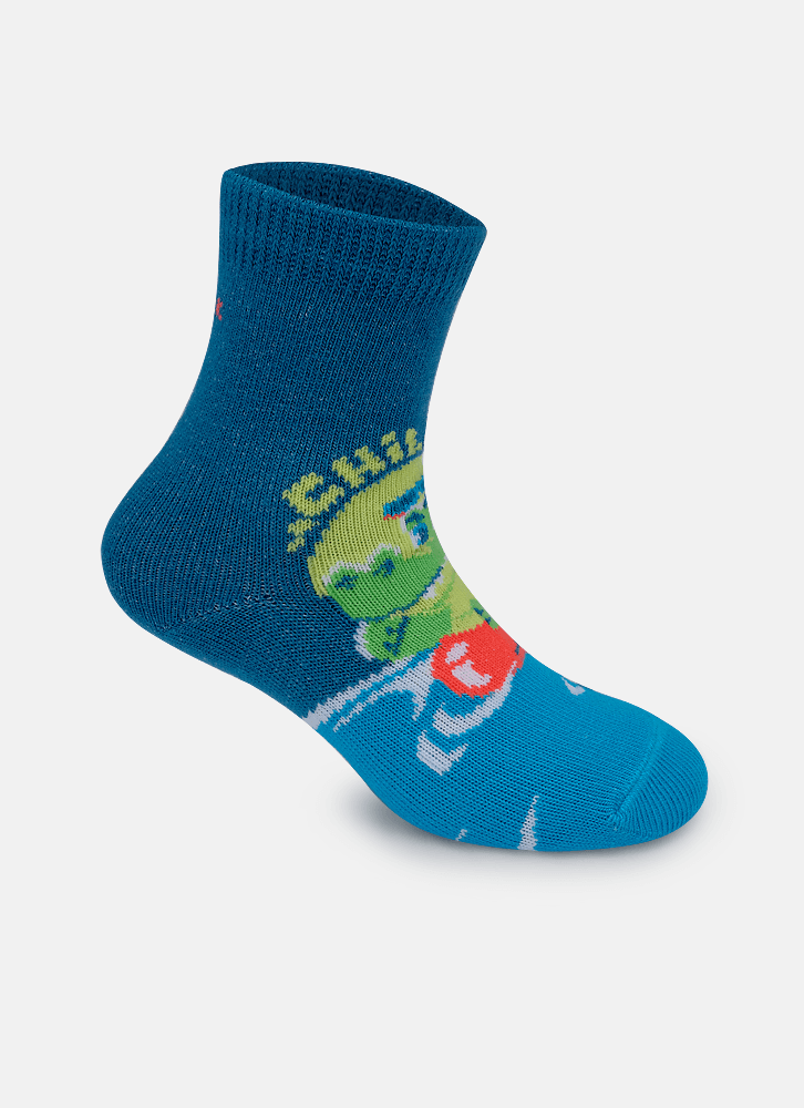 Meia soquete com desenho divertido de jacaré. Possui cano de altura média. Produzida com fio de acrílico macio em sua maior parte, e poliamida no desenho. Indicação de uso: Ideal para usar com calçados fechados. Instruções de Lavagem: Lavagem a mão Não alvejar Instruções de Conservação: Não secar em tambor Não passar Não limpar a seco (MAIS INFORMAÇÕES, VIDE NA ETIQUETA) Instruções de Garantia: Deverá ser encaminhado dentro na embalagem original, sem indicações de uso ACOMPANHADO DE NOTA FISCAL E com todos os itens constante na solicitação da compra.