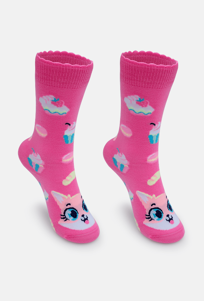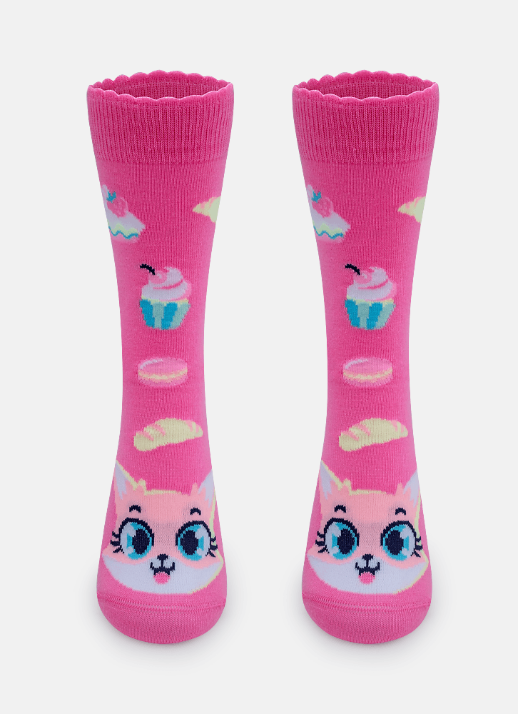 Meia Cano 3/4 Antiderrapante Menina Raposa Confeiteira