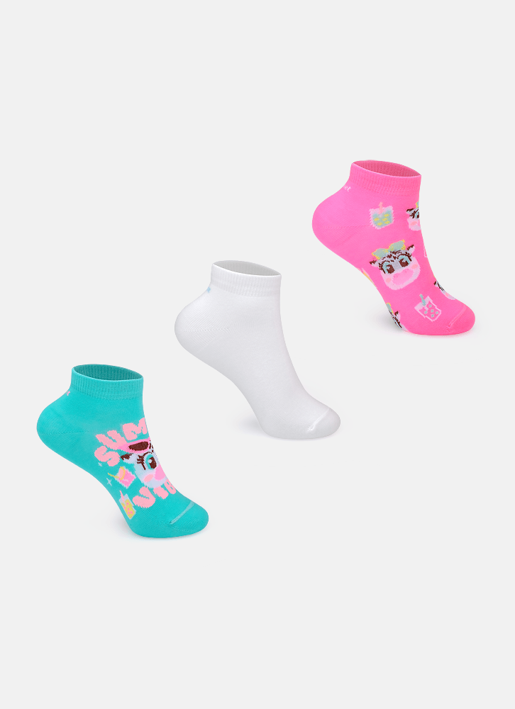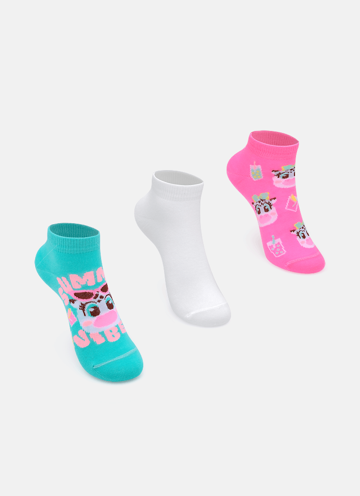 Kit com 3 Meias Soquete Menina Vaca Summer