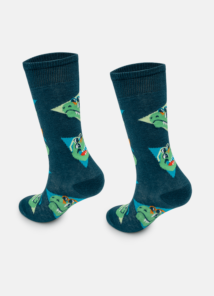 'Meia 3/4 com desenho tema dino possui cano longo abaixo do joelho, é produzida com algodão macio em sua maior parte e poliamida nos desenhos. Indicação de uso: Ideal para usar com calçados fechados. Instruções de Lavagem: Lavagem a mão Não alvejar Instruções de Conservação: Não secar em tambor Não passar Não limpar a seco (MAIS INFORMAÇÕES, VIDE NA ETIQUETA) Instruções de Garantia: Deverá ser encaminhado dentro na embalagem original, sem indicações de uso ACOMPANHADO DE NOTA FISCAL E com todos os itens constante na solicitação da compra.'