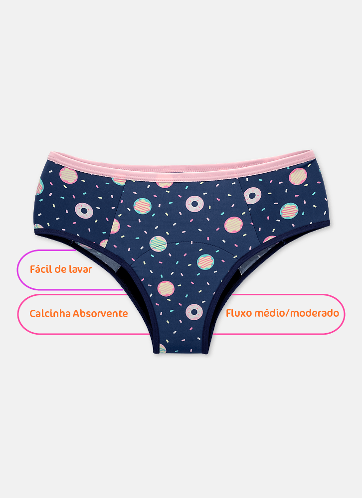 Calcinha Absorvente Microfibra Feminina Panda Donuts
