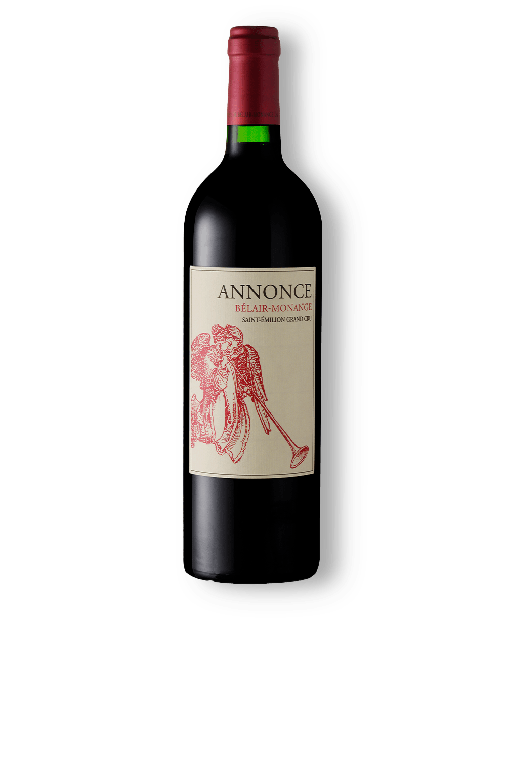 Second vin do grande Château Bélair-Monange, Annonce é um vinho elegante. Criado a partir de vinhas mais jovens do château possui frutas pretas maduras, especiarias e toques defumados. Grande rótulo assinado pela família Moueix.