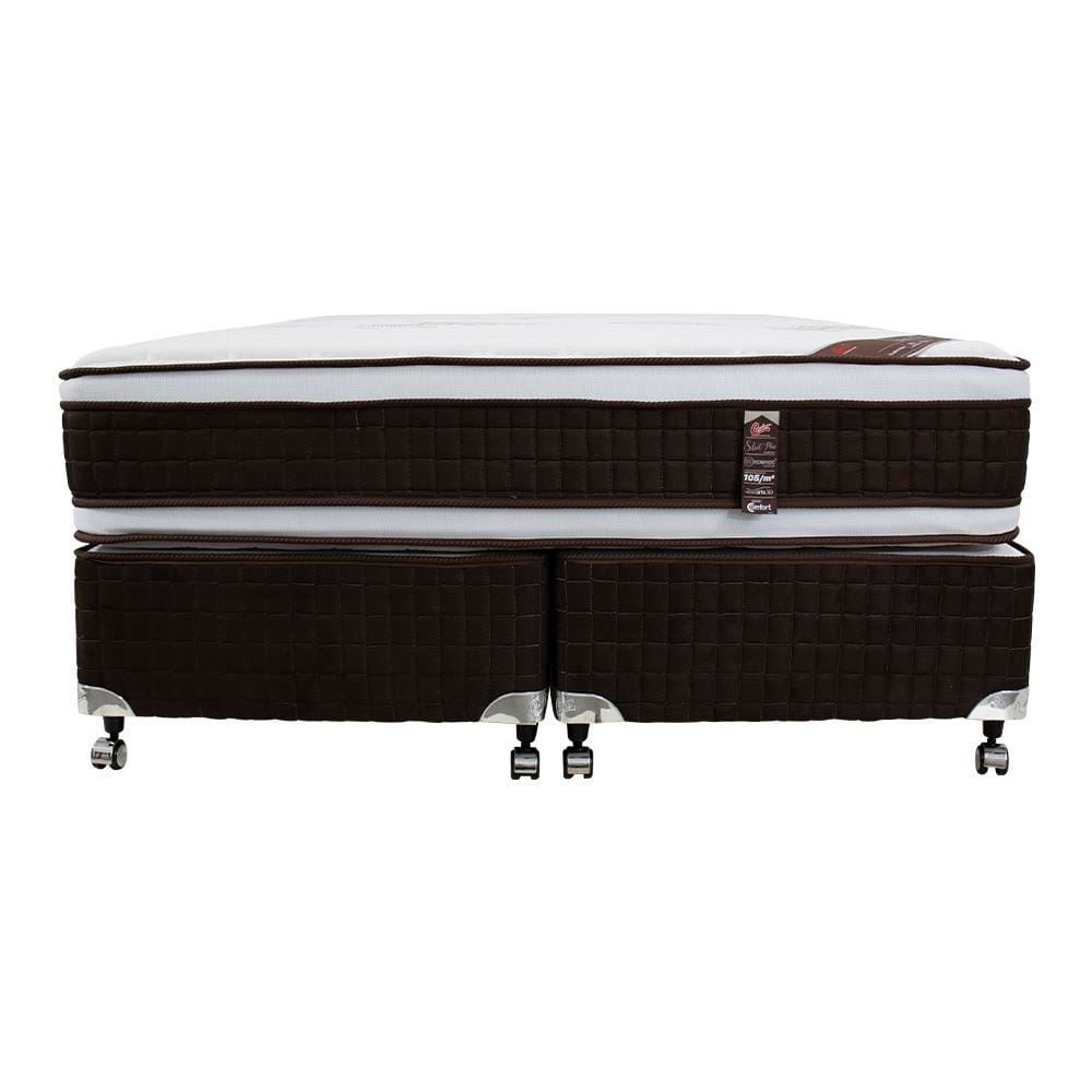 Cama Box King Size Castor Sellect P Double Revestida em Tecido Suede + Colchão com Molejo Tecnopedic e Euro Pillow 34x193x203cm – Marrom/Bege