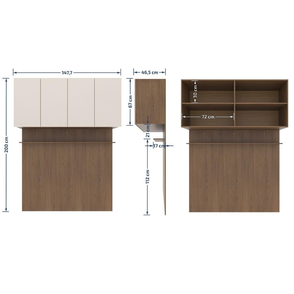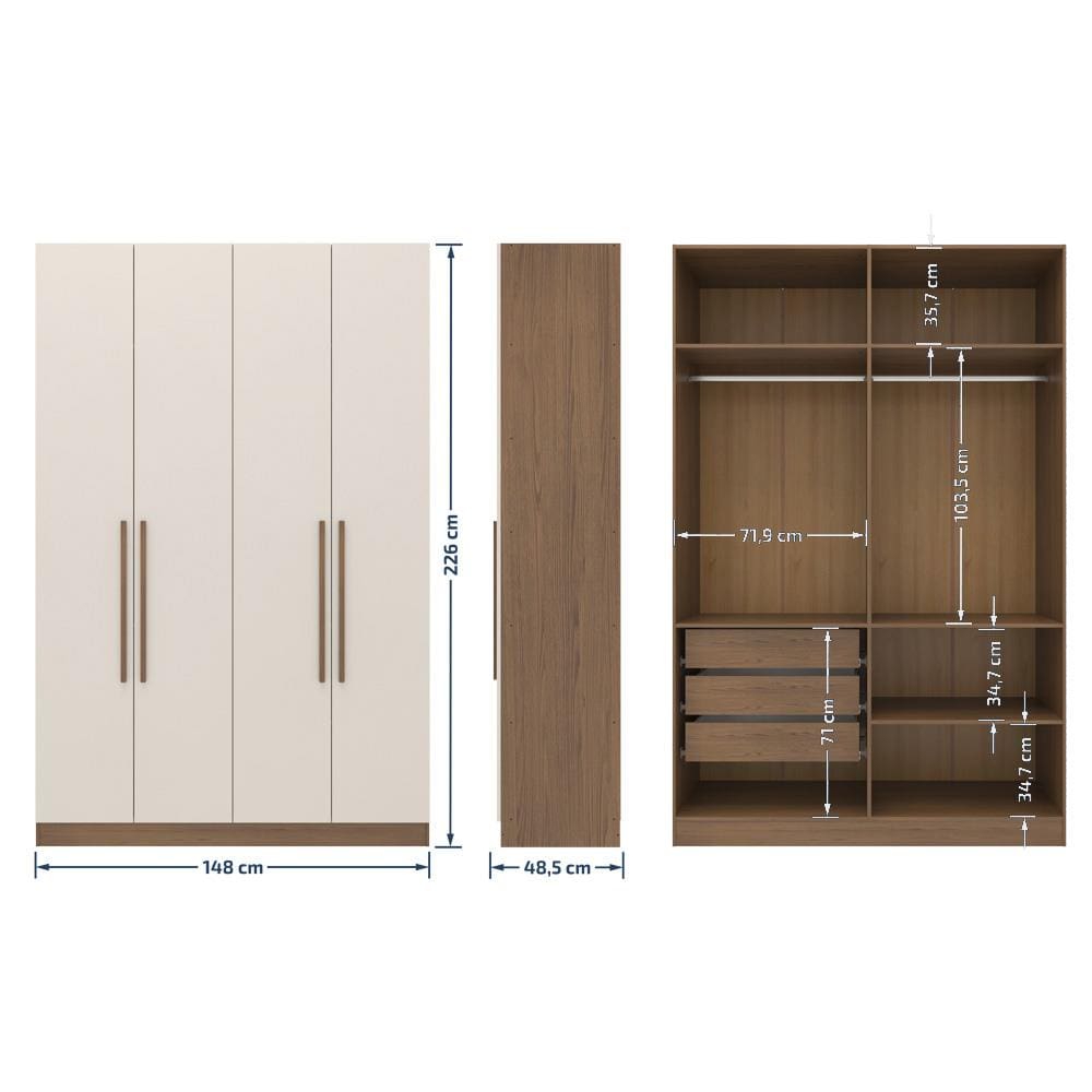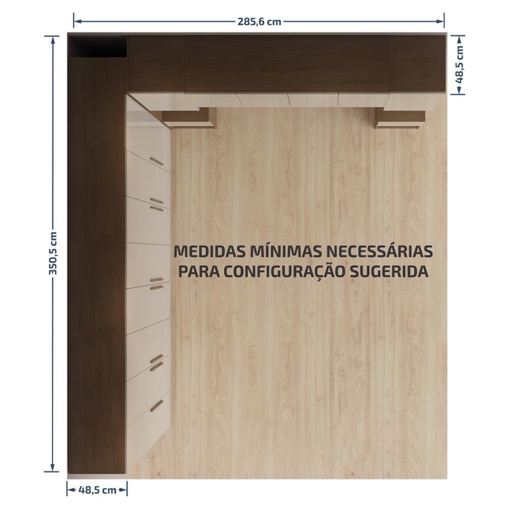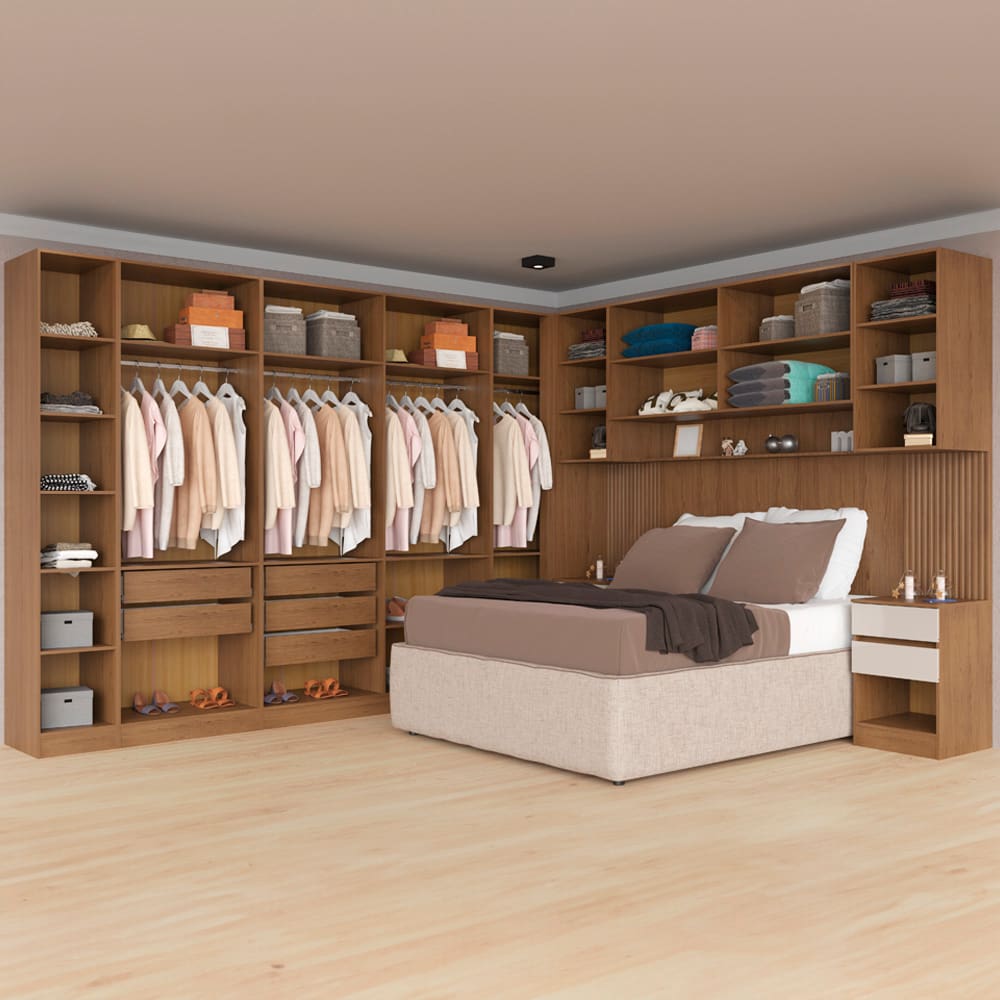 Com múltiplos compartimentos, o roupeiro modulado permite uma vista ampla e organizada dos seus itens e acessórios facilitando na hora de encontrar o que precisa. Entre eles, temos destaque para seu maleiro volumoso e para sua sapateira espaçosa.