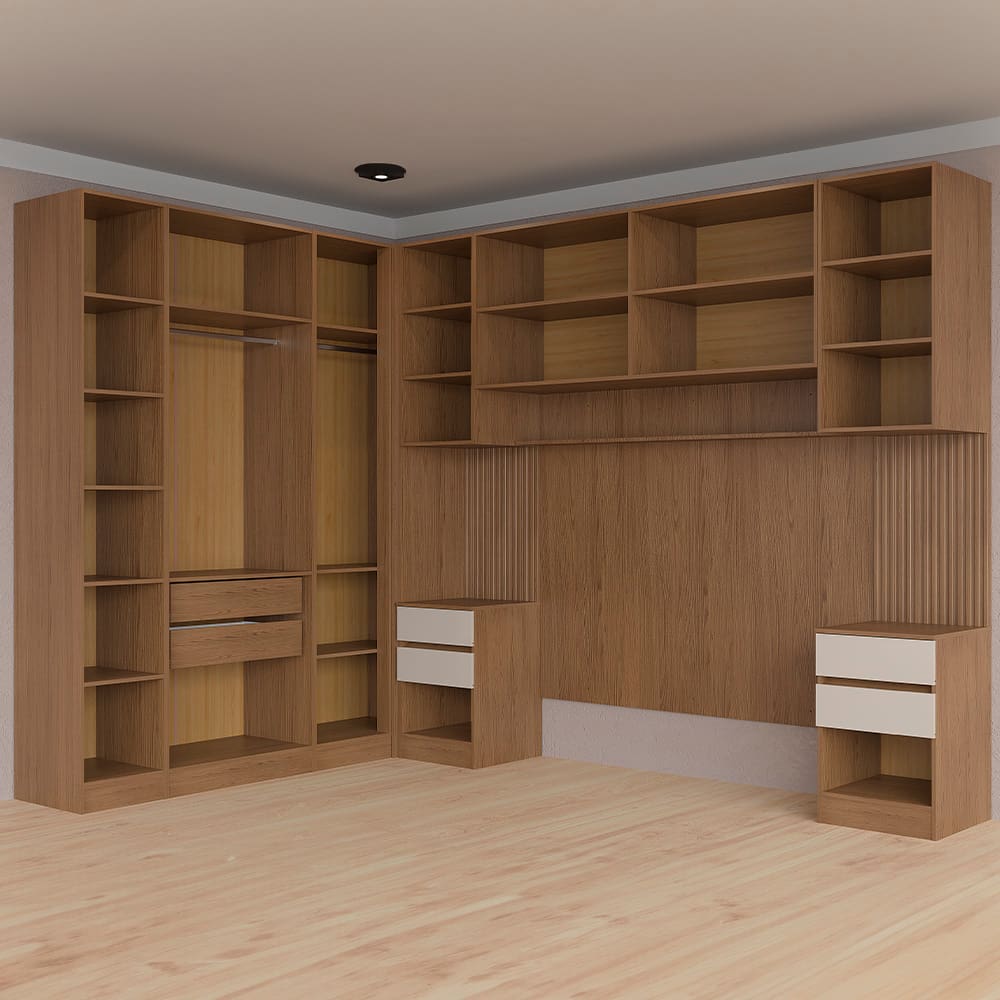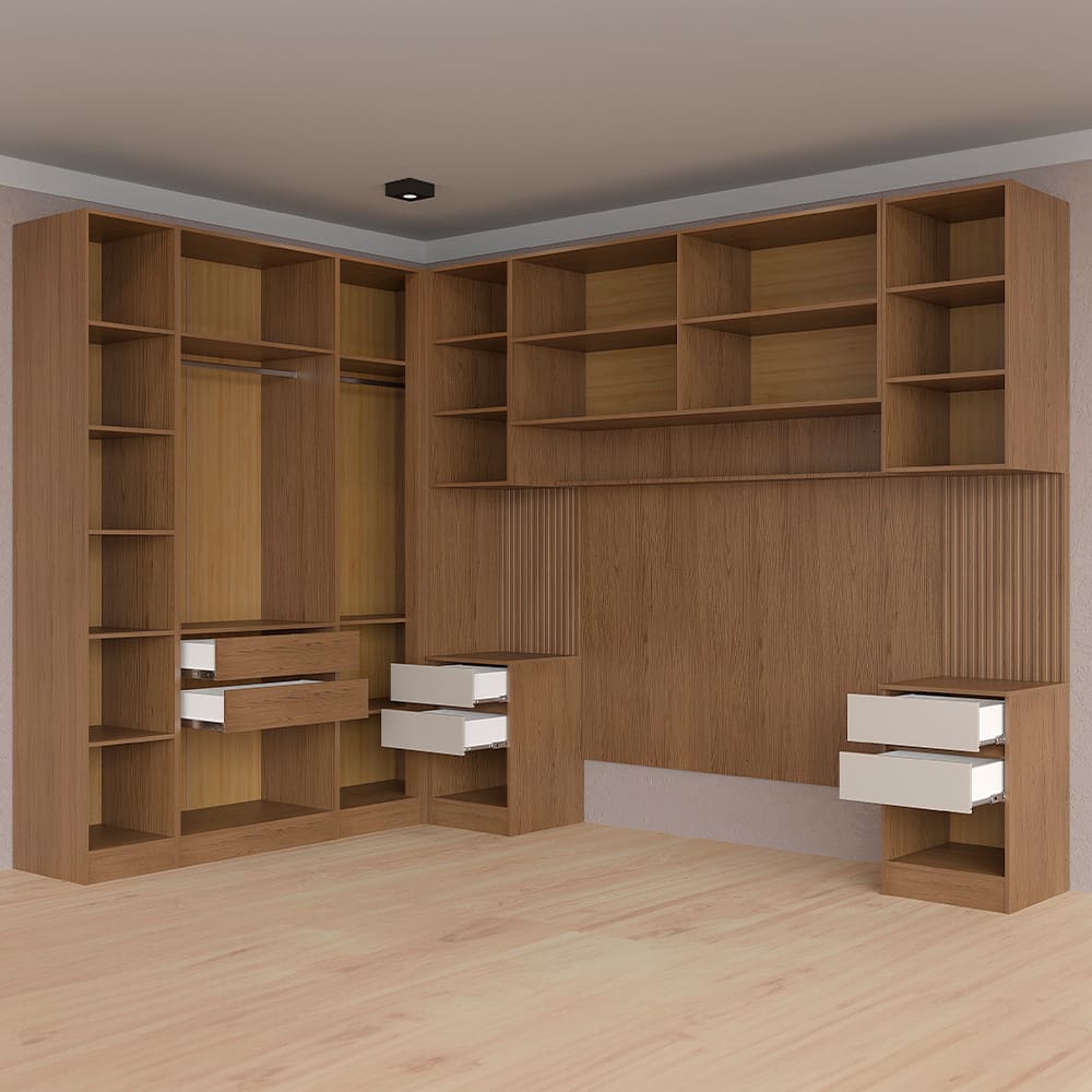 Este guarda-roupas conta com painel ripado que é um detalhe sutil, porém que faz a diferença na sua decoração, favorecendo a mesclagem com outras mobílias do seu quarto.