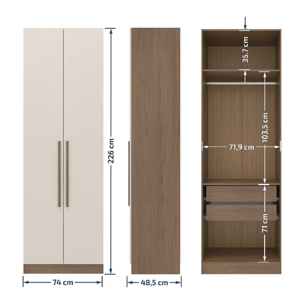 Feito em MDF, com acabamento em pintura UV e puxador externo em MDF o guarda-roupas possui estrutura robusta. Além disso, conta com dobradiças metálicas e corrediças telescópicas que asseguram uma abertura e fechamento mais suaves.