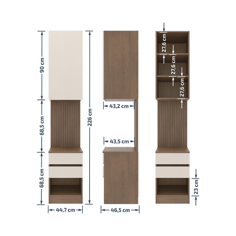 Medidas internas das gavetas: A x L x P em cm - Armário 2 portas: 11x61,4x35 | Armário lateral: 11x36,5x35