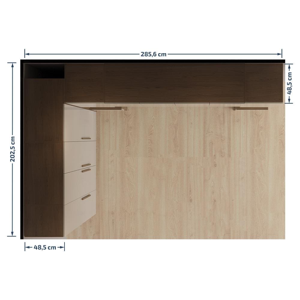 Observações: -O armário possui a característica modular, sendo possível montá-lo em diferentes configurações. No entanto, a porta do modulo canto ficará ao lado direito do gaveteiro.