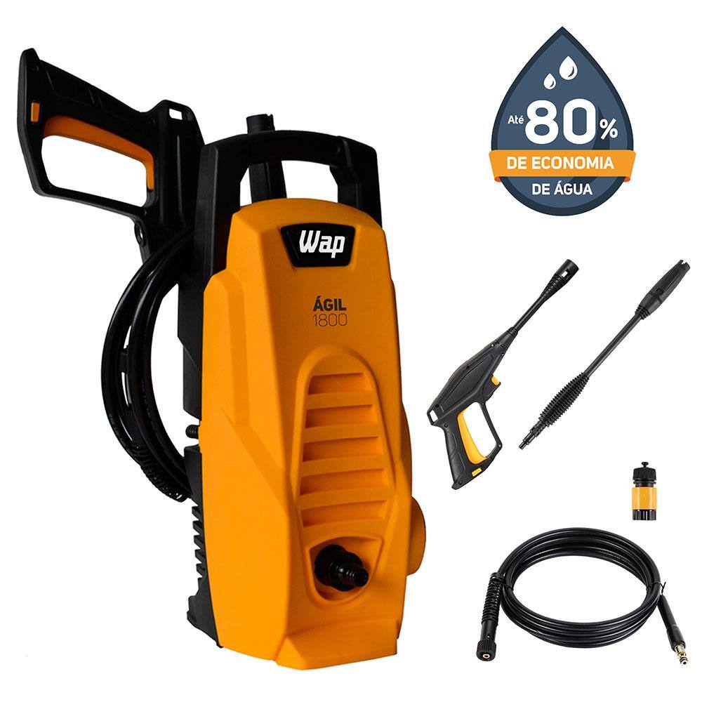 Lavadora de Alta Pressão Wap Ágil 1800 Compacta com Jato de Água Leque e Concentrado, 1300PSI e Sistema Stop Total - 1400W