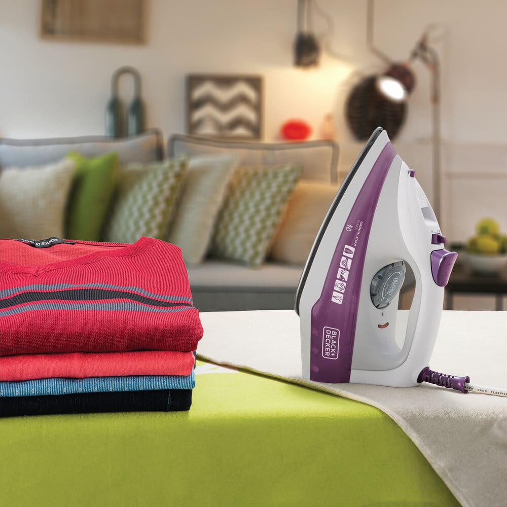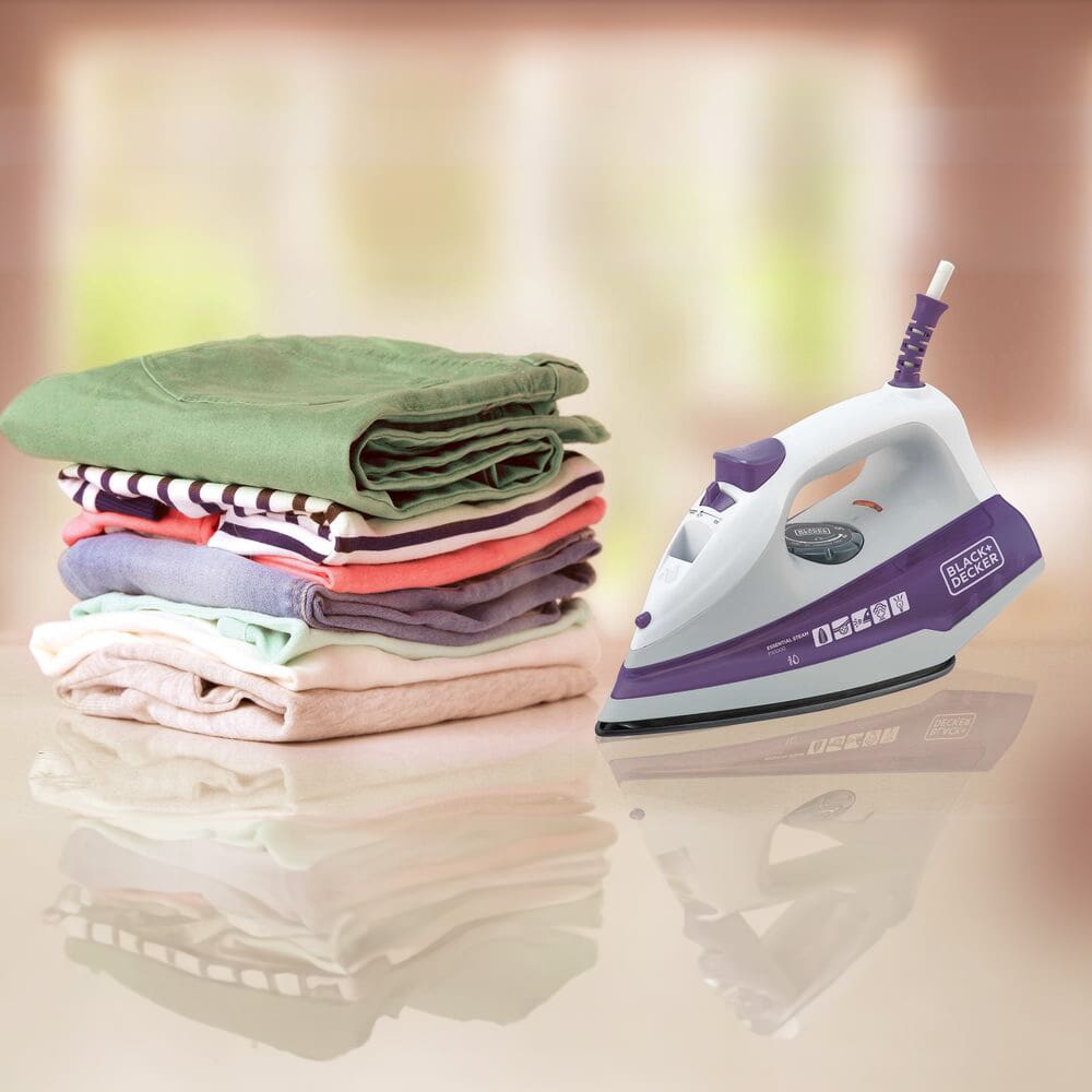 Ferro de Passar a Vapor Black Decker FX1000 com Base Antiaderente - Branco e Roxo