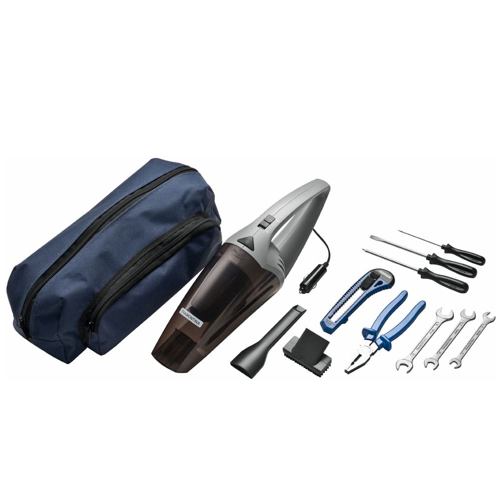 Um conjunto prático, ideal para limpeza e manutenção do seu carro. Conta com Aspirador de pó, alicate universal, e muito mais!