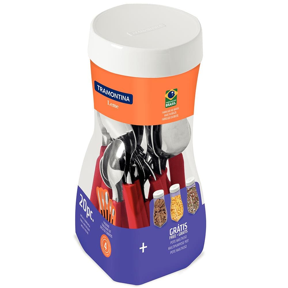 Faqueiro 20 Peças Tramontina Leme em Aço Inox e Polipropileno com Pote Multiuso – Vermelho